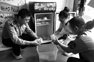 昨日上午,在幼儿园门口的墙上,张贴公示了每天的食谱,食谱下方摆放的柜子里是前一天的食品留样,但已被封条封住了,上面显示“莲湖区食品药品监督管理局9月22日封”。封条上面张贴了幼儿园的“告知”,说幼儿园针对22日的饮食问题,已在当日下午让莲湖区食药监局取样调查,并第一时间对食物留样进行封存,等待检验结果。上午9时许,莲湖区食品药品监督管理局三名工作人员来到幼儿园调查,叫来了发照片的家长包女士和当事的老师。包女士说,老师把照片发给她,因为家离得不远,她就返回了幼儿园,一看发糕和鸡蛋羹就很生气,然后和老师一起找了园长。但是孩子吃了早餐回家后也没有什么异常。