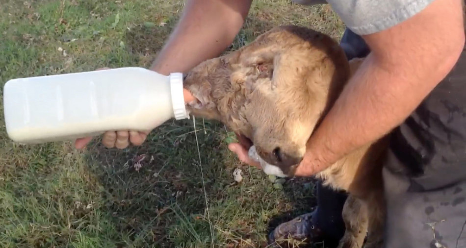 Luckys的主人Brandy和Stan McCubbin承认一开始他们也不知道要怎么办,但现在这头小牛就像他们自己的宝宝一样。