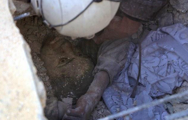 据悉,只有1个月大的女婴奇迹生还,但她的5名家人则在轰炸中丧生。救援组织当时正在现场尽可能搜救出生还平民,组织成员基费赫(Abu Kifah)在救援期间,意外救出这名奄奄一息的女婴,基费赫叫道:“神啊,真主啊。”之后再将女婴放在怀中。