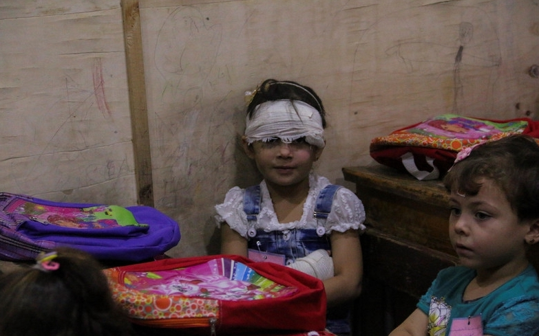 他们中的许多孩子在战争爆发时出生,从未见到过家园和平的样子,图为叙利亚儿童缠着绷带上学。