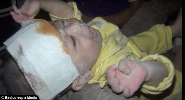 2016年10月1日,叙利亚政府军与反对派持续在阿勒颇交火,造成多人死伤。图为受伤的儿童,最后,女婴被送往医院救治,由于只受轻伤,情况并无大碍。