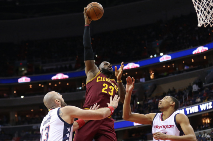 骑士队的勒布朗上半场得到16分、4个篮板和3次助攻,厄文得到13分和4次助攻,勒夫得到10分和6个篮板;奇才队的沃尔得到23分,莫里斯得到14分。