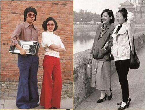 80年代随着改革开放,人们的着装发生了很大的改变,喇叭裤不再是蓝、灰、黑,西装,牛仔裤,迷你裙也开始崛起,人们也过足了时尚隐。