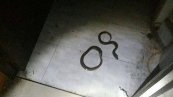 7月16日报道 7月14日晚上,荆门消防月亮湖中队接到七里铺一男子报警,称家中出现了两条蛇,希望消防官兵帮助处理。