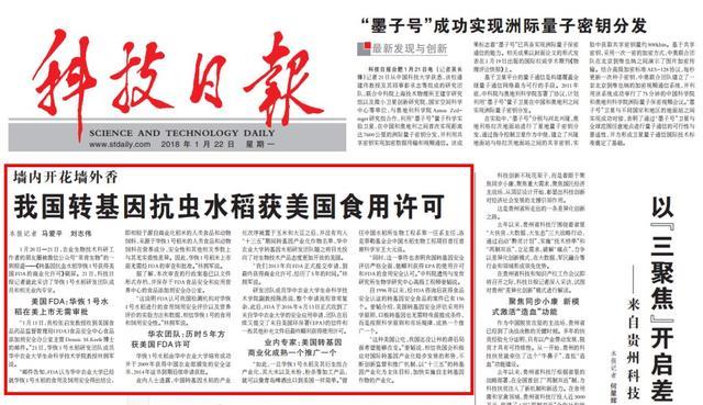 1月22日,科技日报刊发文章《墙内开花墙外香 我国转基因抗虫水稻获美国食用许可》引发了广泛反响。