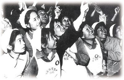 人们争相眺望“东方红一号”通过北京上空。 资料照片(新华社发)