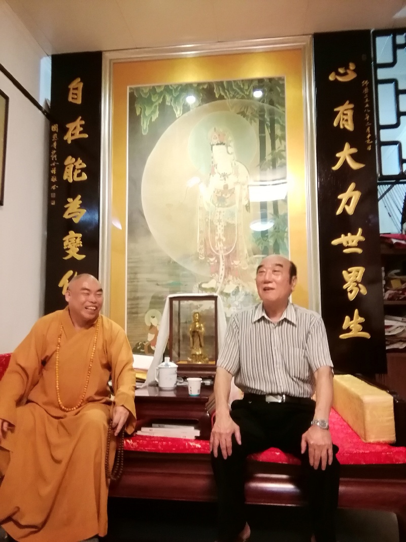 拜访国恩寺释如禅方丈。释如禅大和尚(下图左)热情会见司徒绍同志一行,欢迎大家前来六祖故里观光礼佛,参拜六祖惠能大师。并对司徒绍同志自就任新兴县委书记以来,一直关心国恩寺,求实务实支持禅宗文化建设,表示衷心感谢。
