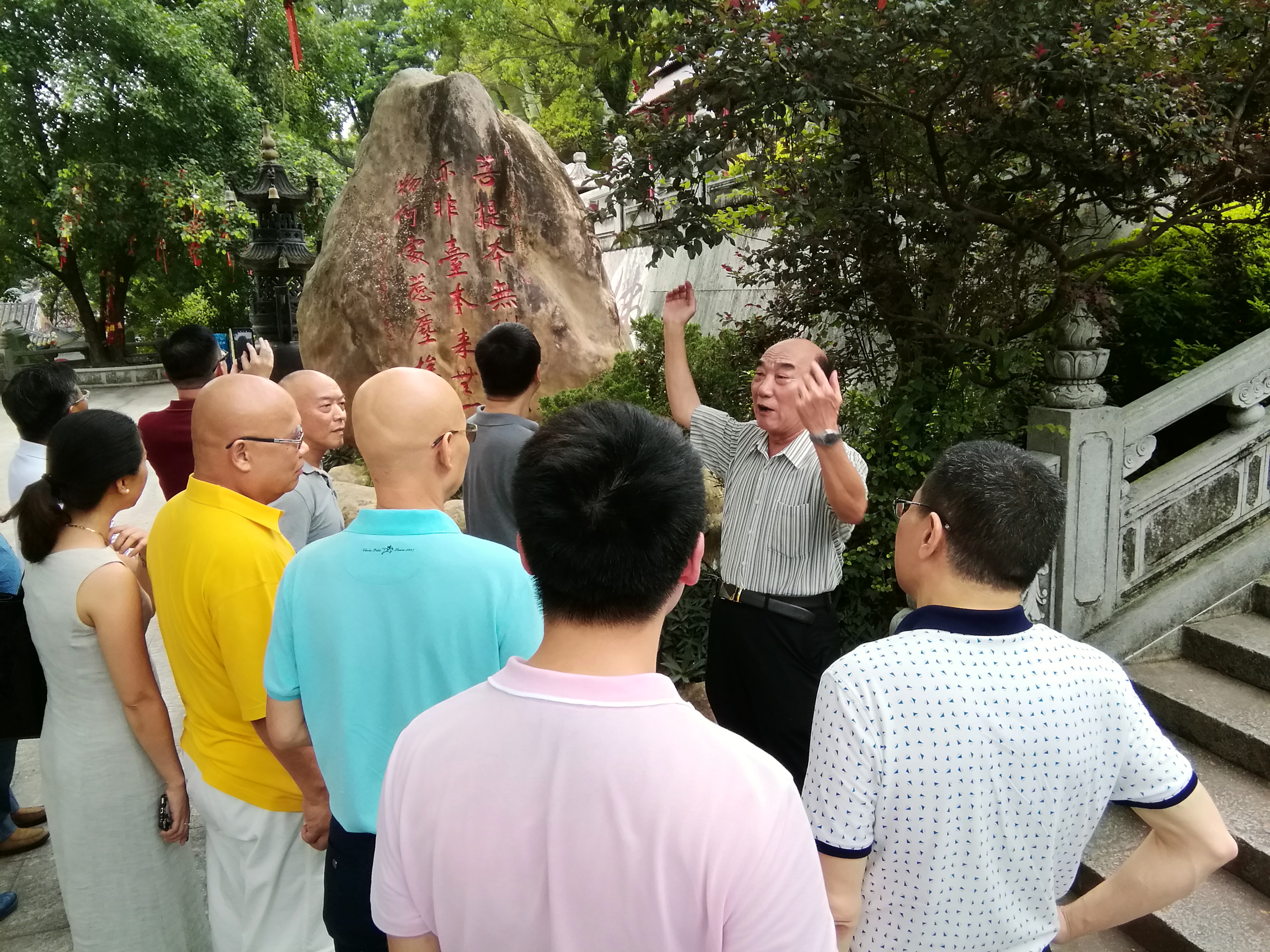 司徒绍同志对禅宗六祖惠能历史事迹了如指掌,无论在任新兴县委书记或省农业厅长,及至现时退休,对弘扬六祖惠能思想文化,推动新兴禅文化产业建设不遗余力。下组图为参观禅宗祖庭龙山国恩寺,司徒绍同志亲自担任“导游”,讲述六祖惠能生平,国恩寺兴衰,细数当年发动县内外海外华侨、港澳同胞和乡贤大力捐助,集腋成裘,组织劈去人头高茅草荆棘,尽去荒芜,修复国恩寺,重建六祖报恩塔等景物景观……更频频点赞在他离任后新兴各届县委县政府持之以恒,持续发展,终建立起以国恩寺为核心,周边禅宗六祖圣迹景观及温泉形成组团的国家4A级(正在创建5A级)“六祖故里旅游度假景区”,和颇具规模的“禅文化产业园”,他用广东话赞许说“搞下搞下,就搞得咁大嘞”。他亦庄亦谐的出色“导游”,众团友戏称之为“正厅级导游”。