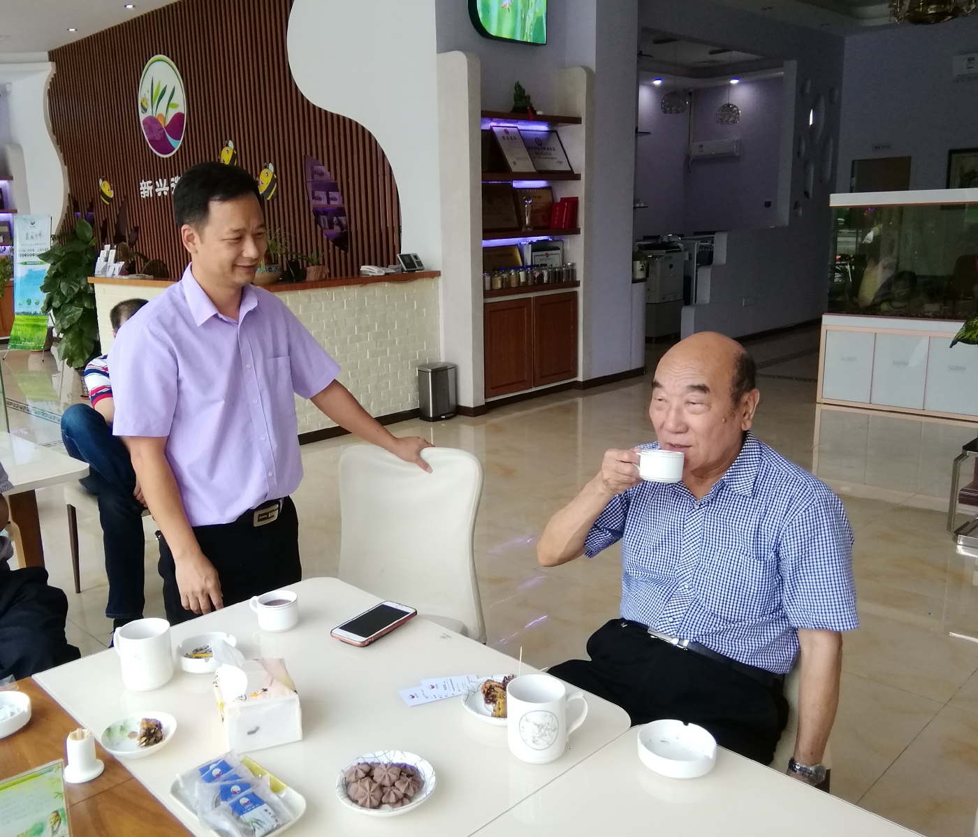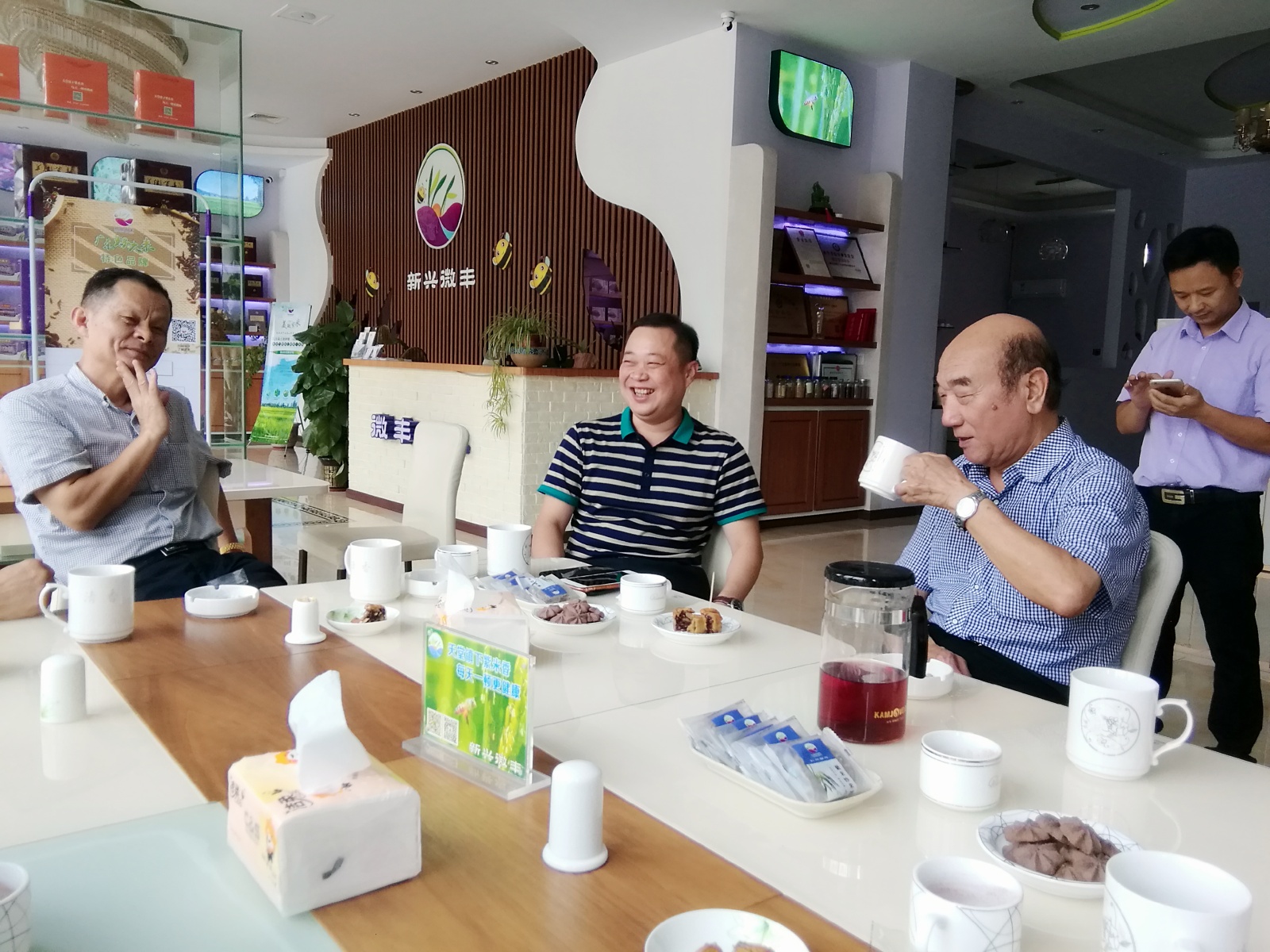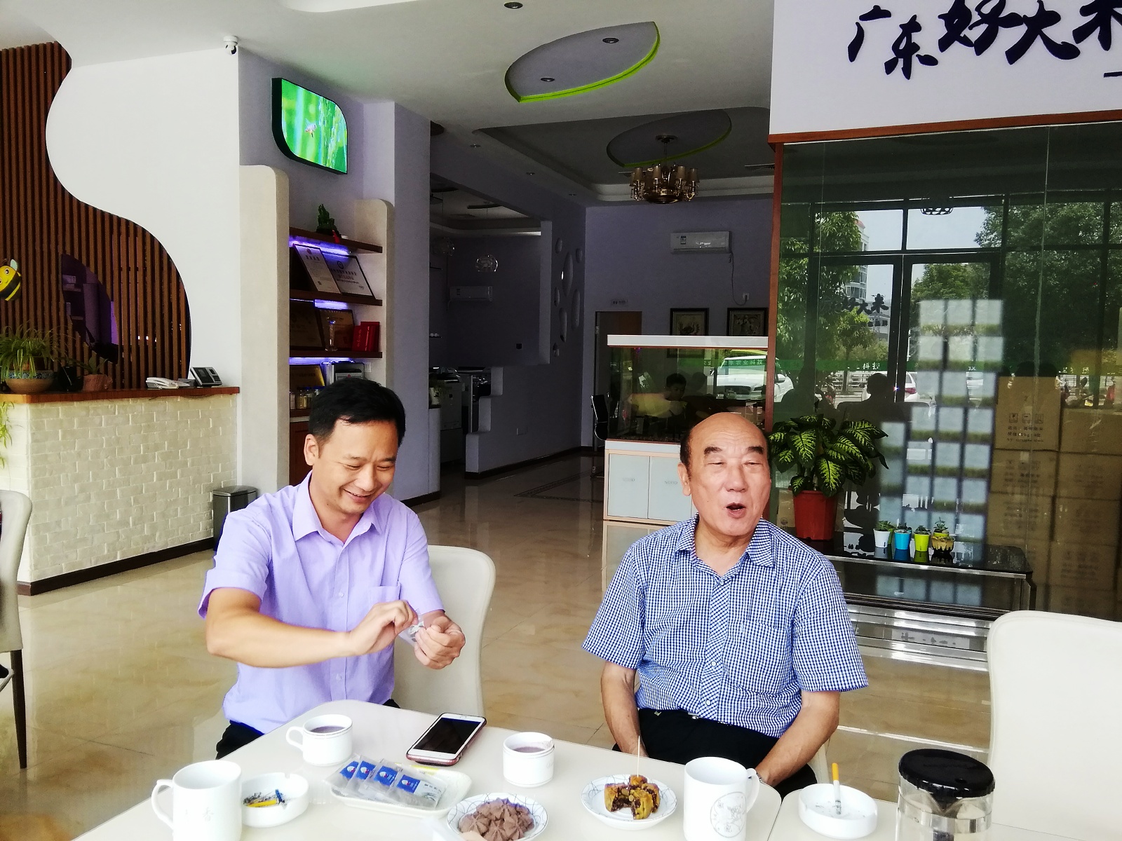 司徒绍同志曾在任新兴县委书记七年,后调任广东省农业厅厅长。虽然退休,但在领导岗位工作长期与农业结缘,对农业科技开发,初心不泯,情有独钟。甫到就对新兴微丰六年来致力开发当地稀有珍品紫米系列取得的成效,产生了强烈共鸣,故地遇知音,与新兴微丰同仁畅谈农业产业强县、强镇、强村,以在任新兴时的点滴经历,信手拈来足可佐证,他幽默自诩:“不忘初心,农情似海”。