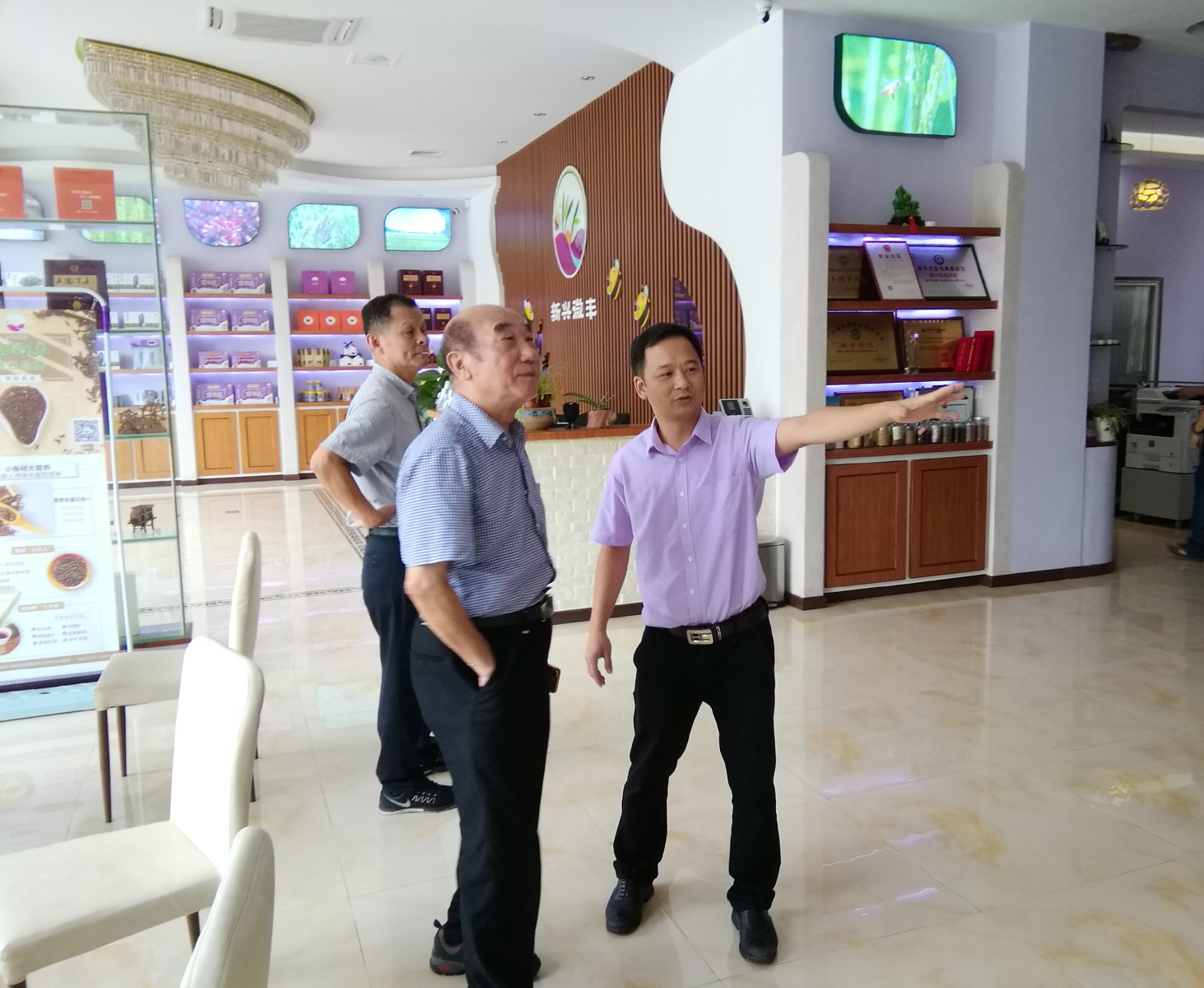 郑经绍总经理向司徒绍同志一行详细介绍了新兴微丰以“食补花青素“为主导理念,开发以紫米等特色农产品为基础的健康食品。