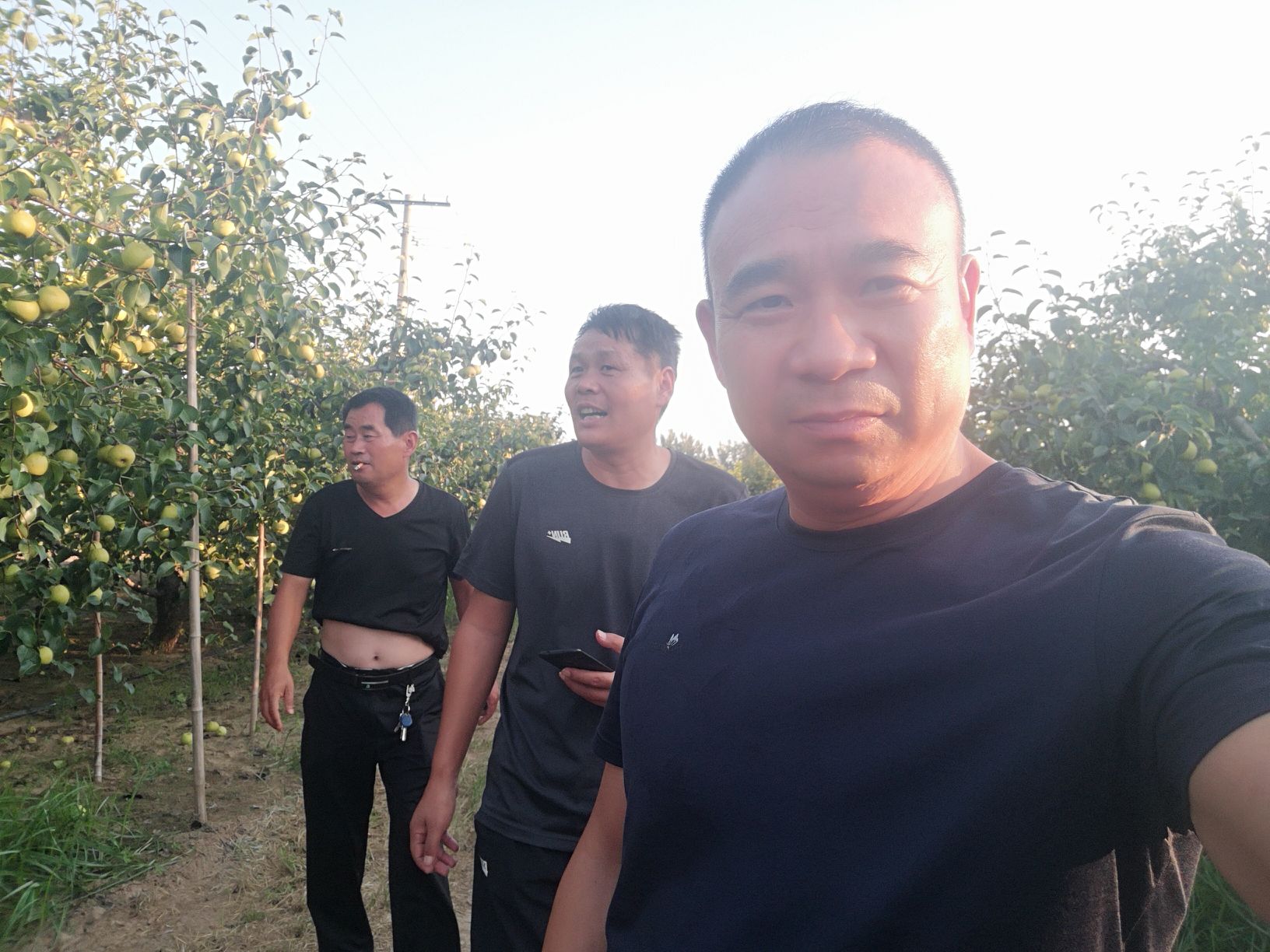 与基地樊总(左一)游览300亩梨园