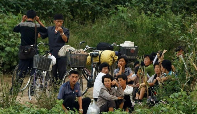 图中为朝鲜人民等待摆渡的船只,以便到集市兜售或者购买物资
