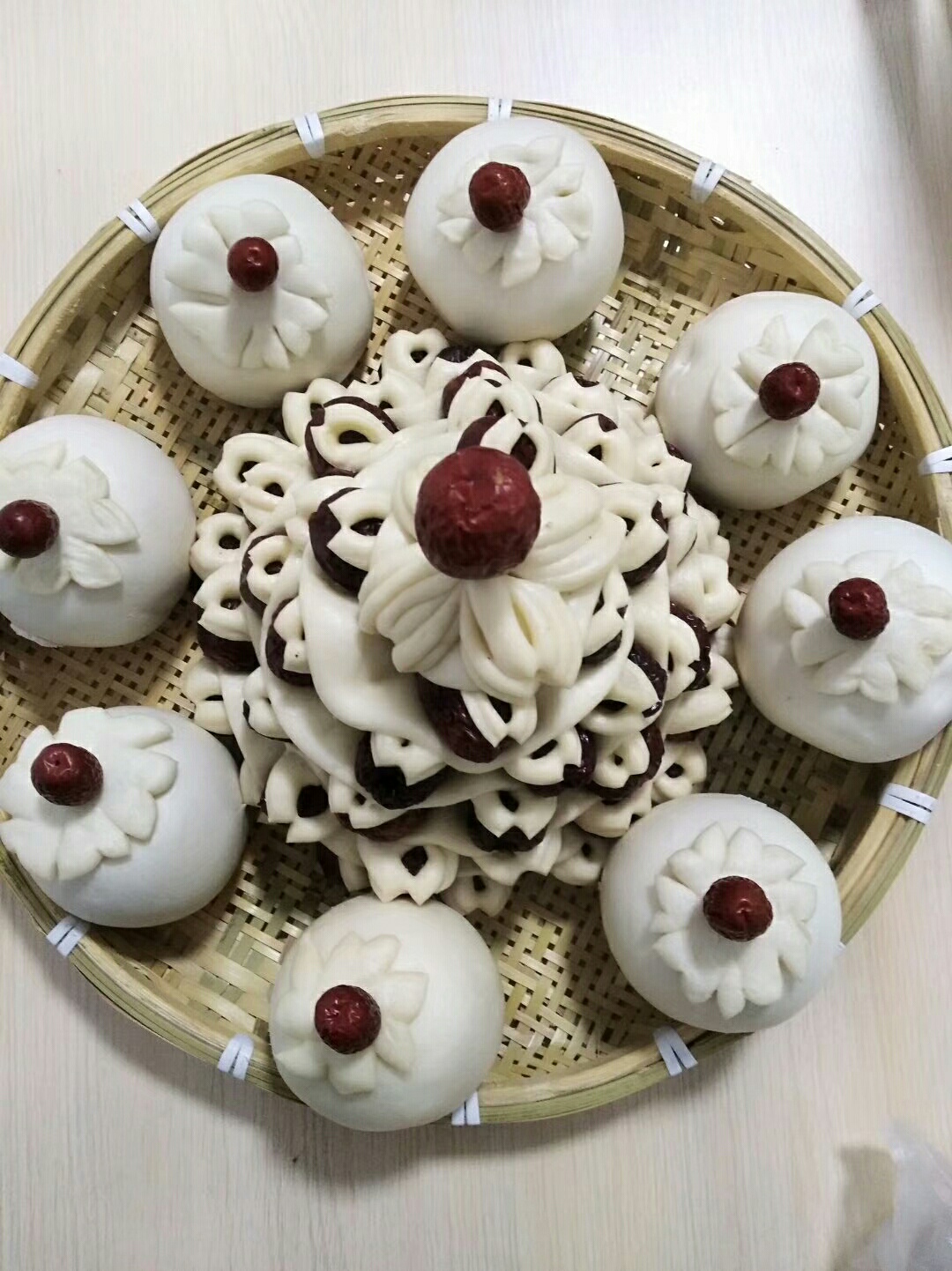这种枣花糕在家乡还有一个风俗,过年时当娘的给姑娘专门做的一种食品,也就是初二回娘家时,给闺女带回家的礼物。枣花糕的寓意很简单,当娘的就是希望自己的闺女在新的一年里长得像花儿一样越来越年轻越来越漂亮,工作和生活红红火火,高高兴兴一年比一年高。