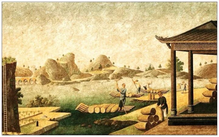 三个人一起抬树,