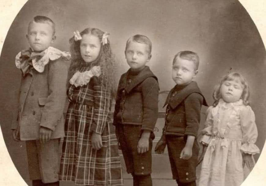 在摄影刚出现的时候拍照对于当时很多人都是极其奢侈的一件事,摄影是一种新颖而又昂贵的手工艺品,所以一个验尸图片往往是死者唯一存在的照片,并被他们的亲人珍惜。这些孩子也是去世了的。看着好诡异
