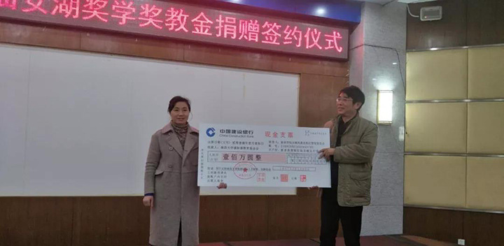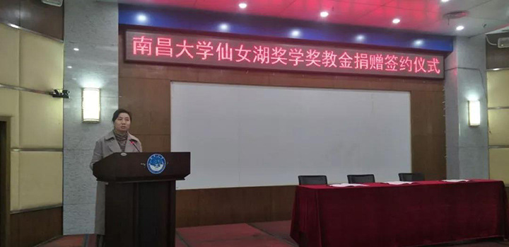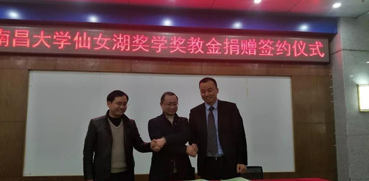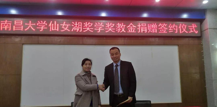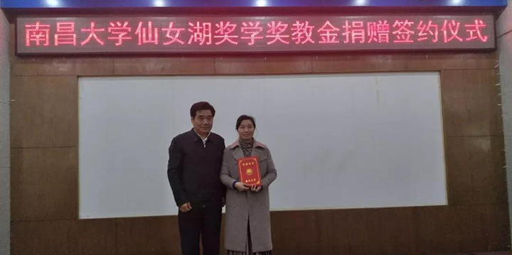 “南昌大学仙女湖奖学奖教金”由仙女湖区管委会无偿捐赠,捐赠资金用于设立南昌大学仙女湖奖学金及奖教金,同时用于支付奖学奖教金评审、大学生旅游创新创业活动、学术讲座与学术交流活动、专业服装定制和开展专项调研等费用,总金额为100万元人民币。