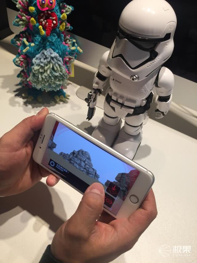 任务模式则是白兵机器人进行AR互动的精髓了。点击任务模式,白兵机器人将带我们来到贾库星球,来一场星球间的真枪实战。机器人的摄像头巧妙的塞在白兵目镜的中间,由于是黑色的,不仔细看还不一定能发现,麦克风则有三个,分别位于头盔的左下角、背部开关键两侧,用于收取用户的声音,扩大语音的接受范围,你可以从任何方位给白兵机器人下指令,他都能够快速响应。