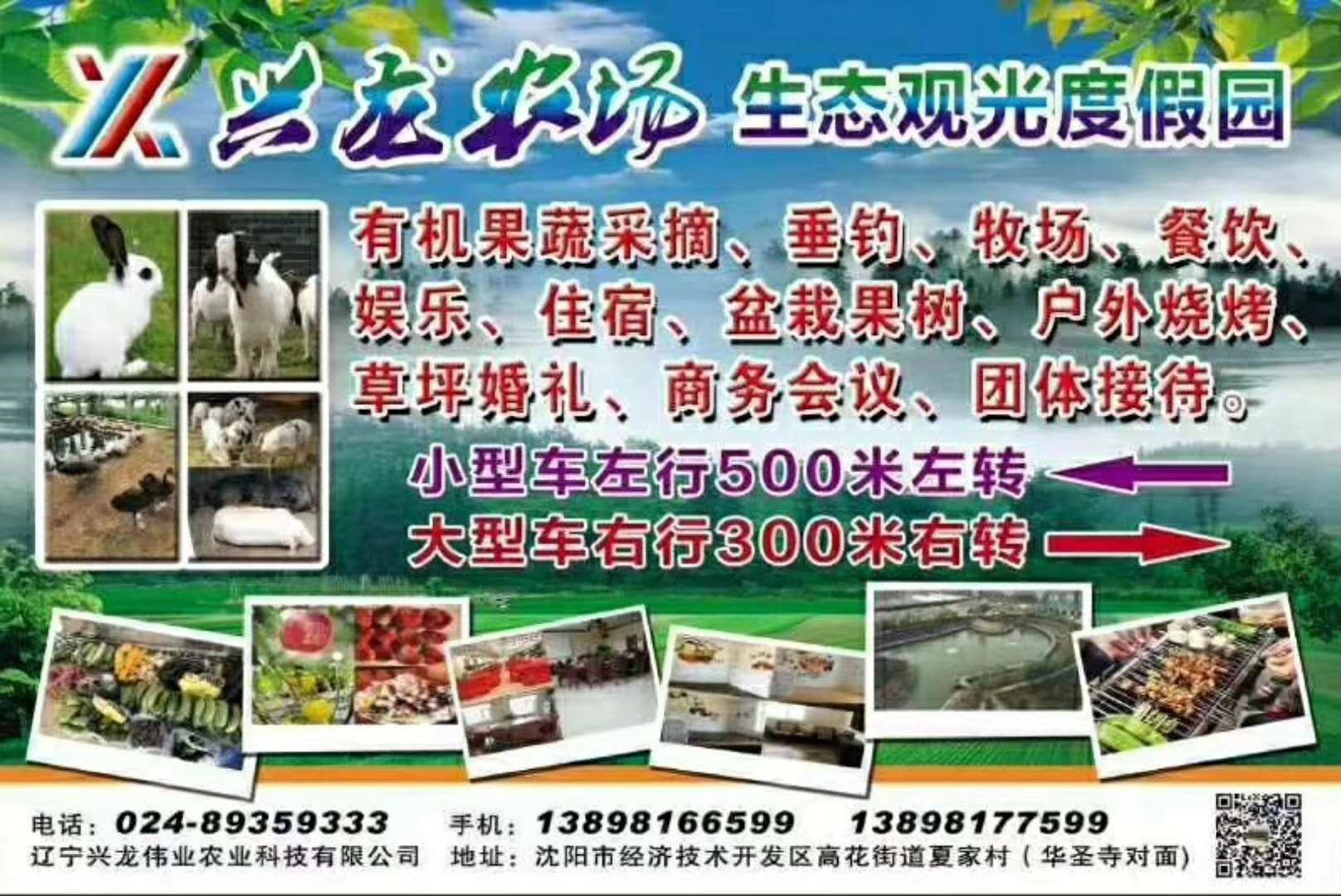 兴龙农场生态观光度假园(辽宁兴龙伟业农业科技有限公司),此生态观光度假园位于体西区高花街道夏家村"华圣寺"附近,农场景致优美,设备齐全,是集采摘、垂钓、观赏、骑马、酿酒、餐饮、休闲、住宿于一体的综合性都市生态观光园。