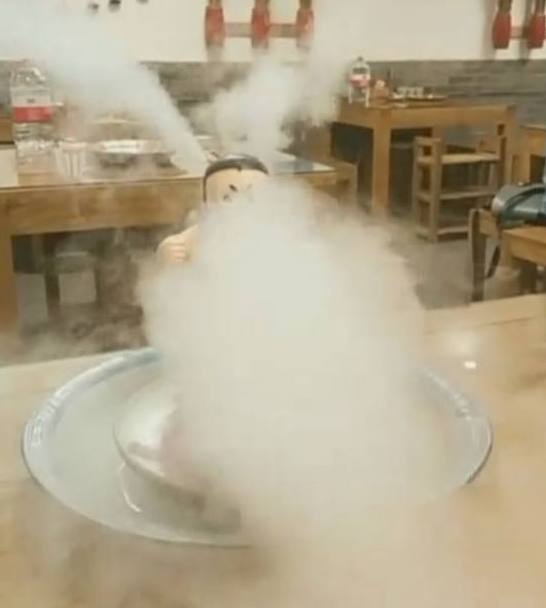 看到这样的葫芦娃,我们以为是道具,只是看着好看罢了,哪知道我们都错了……只见服务员把一壶滚水倒在了葫芦娃身上,道义的一瞬间,葫芦娃就像发怒了一样,头上和嘴里同时“喷烟”,就像加了特效一样,看着十分壮观呢……