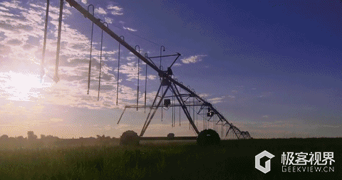 美国现代化农业,在地底蓄水层的农田,依靠中心旋转灌溉系统来定时为农作物灌溉