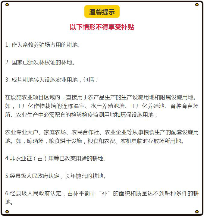 在全省范围内,原则上对种地农民拥有承包权的耕地、村组非承包地在农村土地确权时被确认的耕地、国有农场和国有农牧渔良种场的耕地给予补贴。