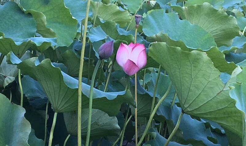 前年去过山架的“荷塘人家”参加过咏荷诗会,那些荷的风姿与舞女的婀娜,弹着古筝的古装女子与穿着旗袍走秀的熟女,写诗颂荷和读诗品荷的人群又从记忆的盒子里弹出来,让我倍加想去赏荷。