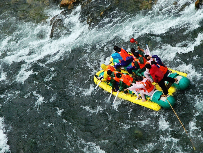 此段漂流全程约需5个小时,也可以只漂半程,那是从哈尼宫到泥路河大桥这一段,需要三个小时。如果是全程漂流,到达猴儿跳后,会有游船载开往芙蓉镇,全程约需2个小时。如是早上开始漂,可以漂全程,然后去芙蓉镇上游玩;如果是下午开始漂,就只来得及漂半程了。漂流时一般6至10人乘一艘皮筏,每人均会穿上救生衣,船由当地艄工撑,所以有惊无险。