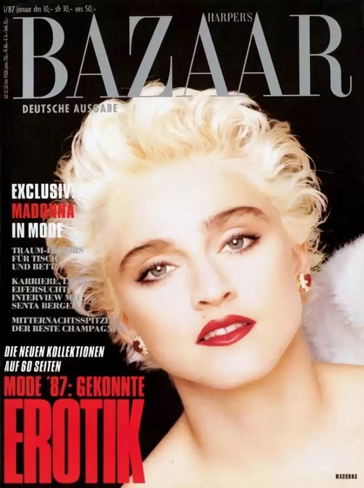1987年,出道4年的Madonna开启了个人首次全球巡演,落地德国, 借此机会与《时尚芭莎》结缘,以一袭俏丽金色短发和黑色皮衣率性造型登上德国版芭莎封面并拍摄内页大片。