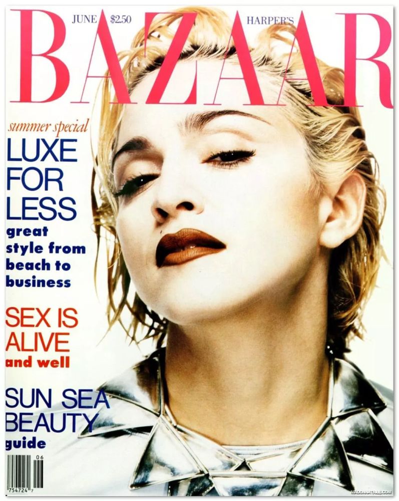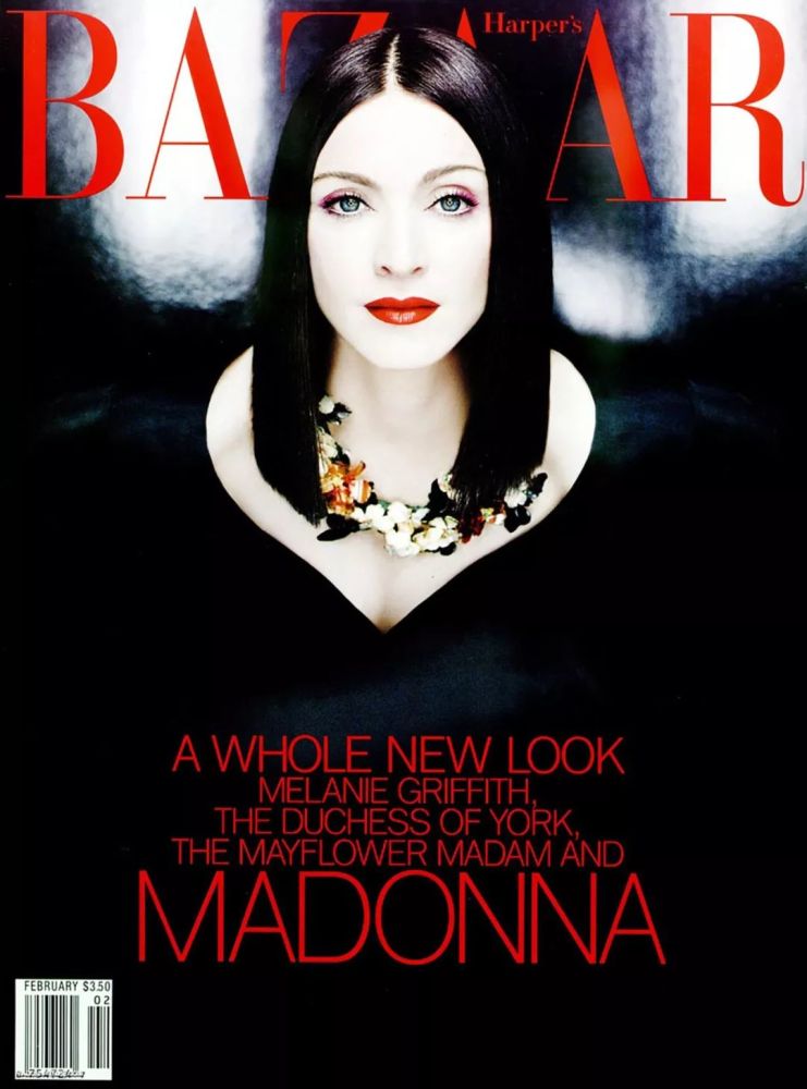 1990年,Madonna第二次登上美国版芭莎封面。此刻的Madonna 迎来了她出道十五年的全盛时代,每一本出版刊物的封面——从时装杂志到音乐杂志,从星座杂志到机场杂志,她成了这个时代无处不在的巨星,Madonna 也选择了本期《时尚芭莎》,做为她即将开展的又一场全球巡演的舞台造型首发,而这一次,又将颠覆她“百变女王”这个称号的定义。