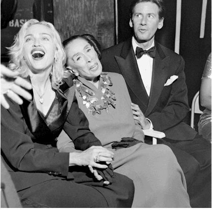 Madonna 与恩师、现代舞创始人之一Martha Graham, 图右为美国设计师Calvin Klein