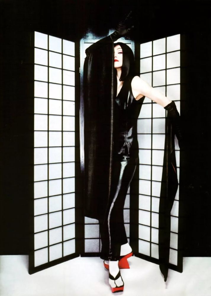 此时, Madonna 融合未来感和民族/宗教风格的个人形象也得到时装界追捧: 拍摄 Versace 广告, 并以品牌挚友身份, 身穿高级定制 PVC 紧身上装拍摄专辑封面; 在 VH1 Fashion Awards、奥斯卡颁奖典礼等典礼上选择了设计师 Olivier Theyskens 的拖拽黑色晚礼服, 力推新人; Grammy 颁奖典礼以一袭 Gaultier 定制的猩红日本艺妓前卫造型开场. 在摄影大师 Patrick Demarchelier 掌镜的这期 Harper's BAZAAR 中, 就成了她一段难忘的”艺妓回忆录“ (期间作为原著粉, Madonna 曾接触过《艺妓回忆录》当时的导演 Steven Spielberg)。