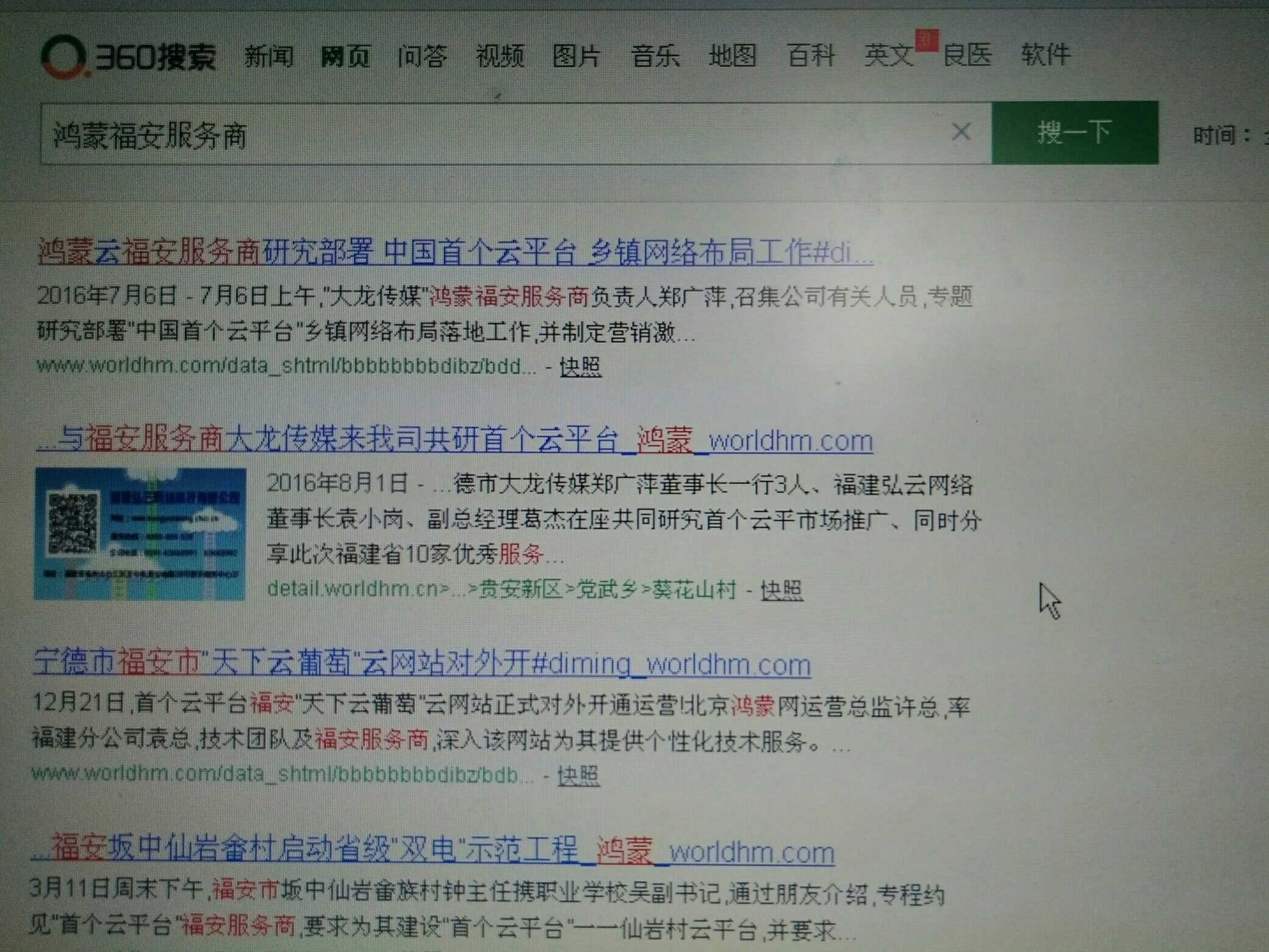 在360丶百度丶搜狗丶谷歌上通过搜索引擎“鸿蒙福安服务商“,就会自动跳出大龙传媒撰写的任何资讯!