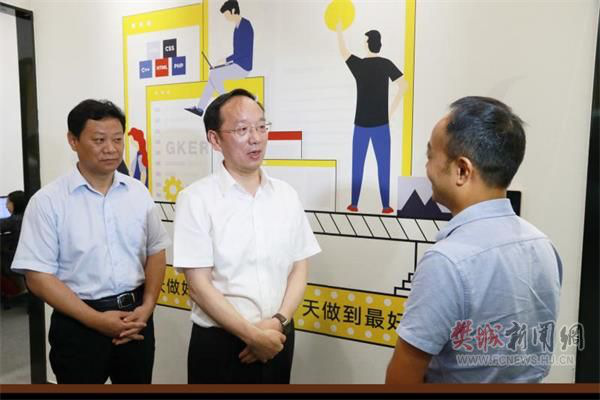 8月16日上午,市委书记李乐成到樊城区绿地国际创客中心调研创新创业工作。