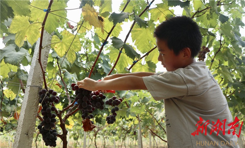 8月21日,在乐果家庭农场的富硒葡萄园里,一串串深紫色、晶莹剔透的葡萄挂在绿叶下十分惹人喜爱,偶有市民带着孩子过来体验采摘乐趣。“好吃,超级好吃,特别甜!”边采摘边品尝的孩子们对沁甜的葡萄爱不释手。