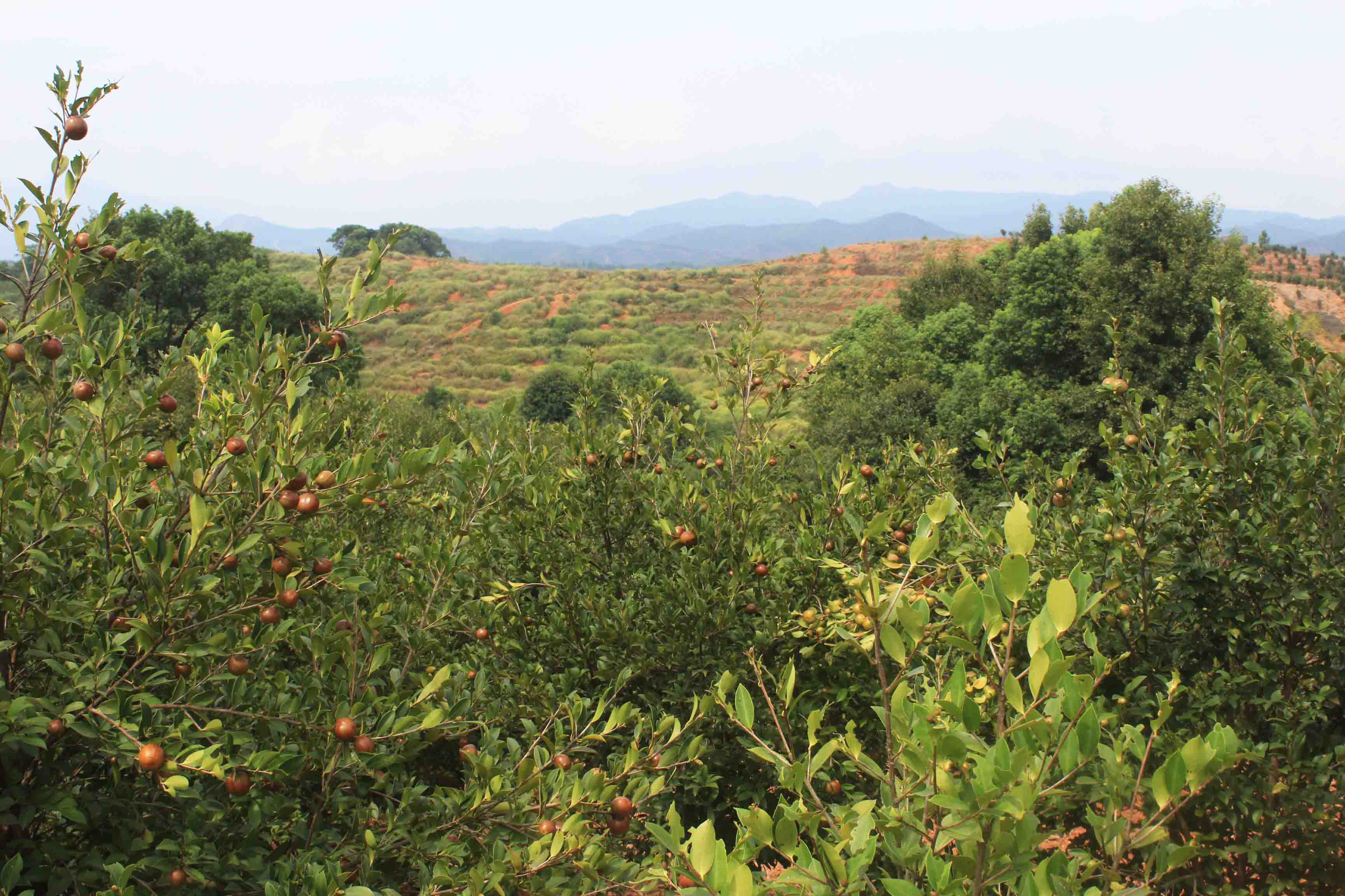 9月2的早晨,我司谭董、赖总陪同茶陵工会李主席等一行人来到位于腰潞镇珍武村旺丰油茶种植农民专业合作社,参看了大约7000余亩的油茶种植基地。满山的油茶树,硕果累累。
