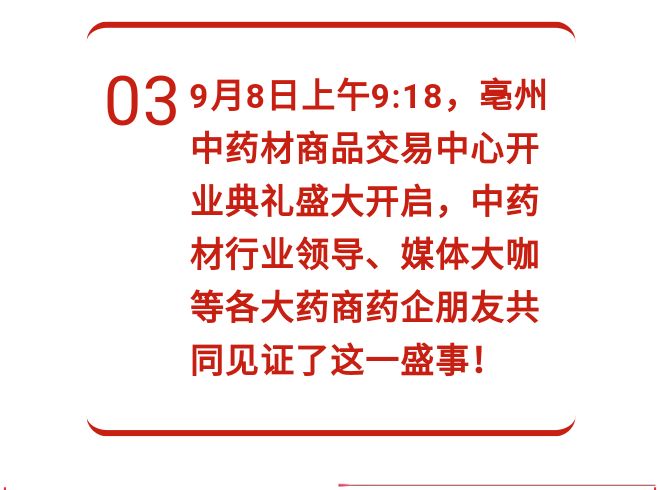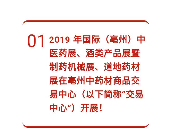 今年是亳州中药材商品交易中心首次主办2019年国际(亳州)中医药博览会暨第35届全国(亳州)中药材交易会,在此期间交易中心也盛大开业,交易中心将以此次药博会为契机,向社会及行业传递企业声音:交易中心立足中药材全产业链,运用“中药材+互联网+仓储物流+质量检测+金融服务+产业配套”全新商业模式,打造 “平台+实体”智慧药市,服务于中医药全产业链!