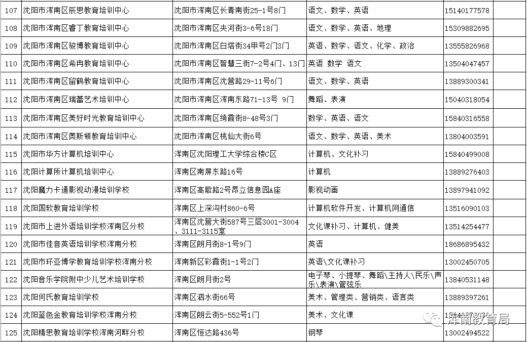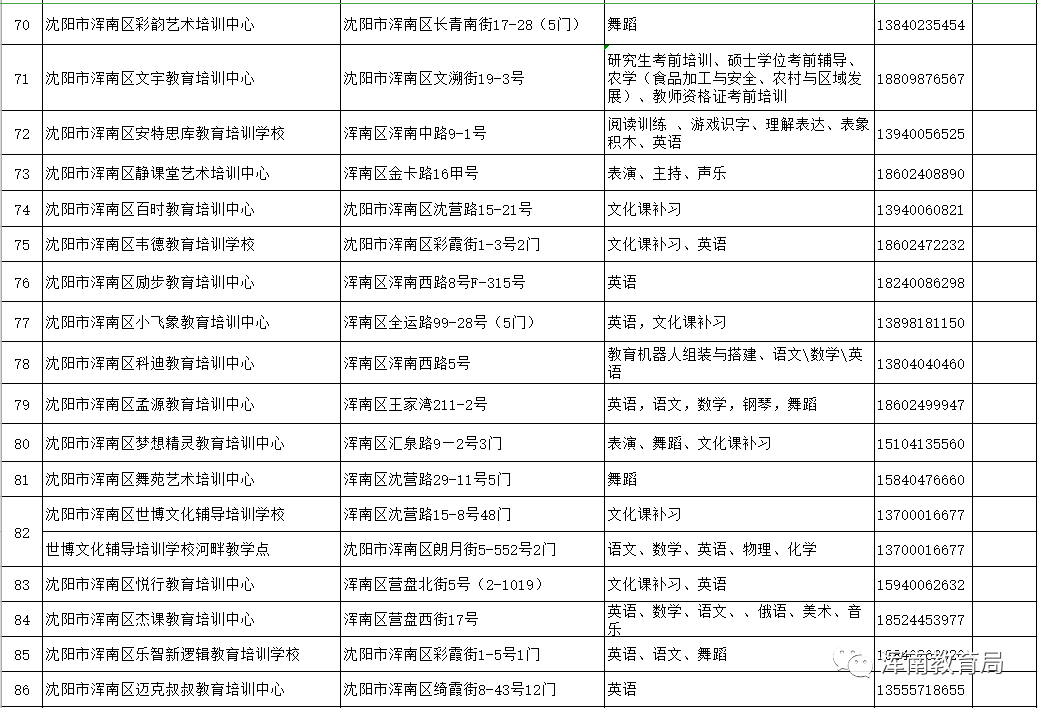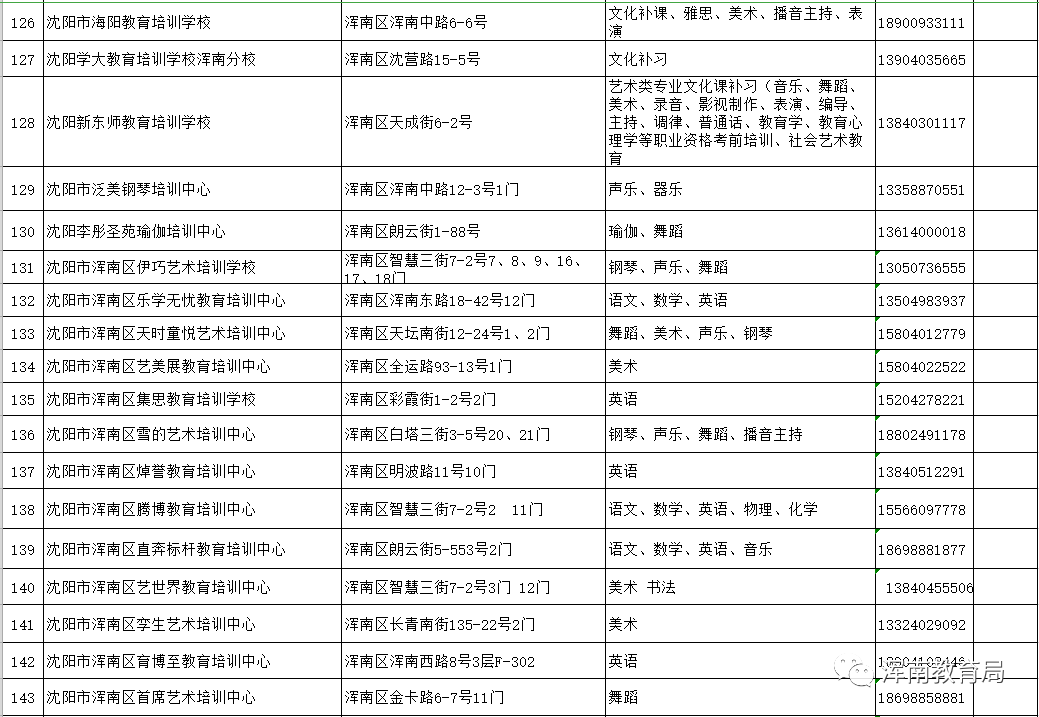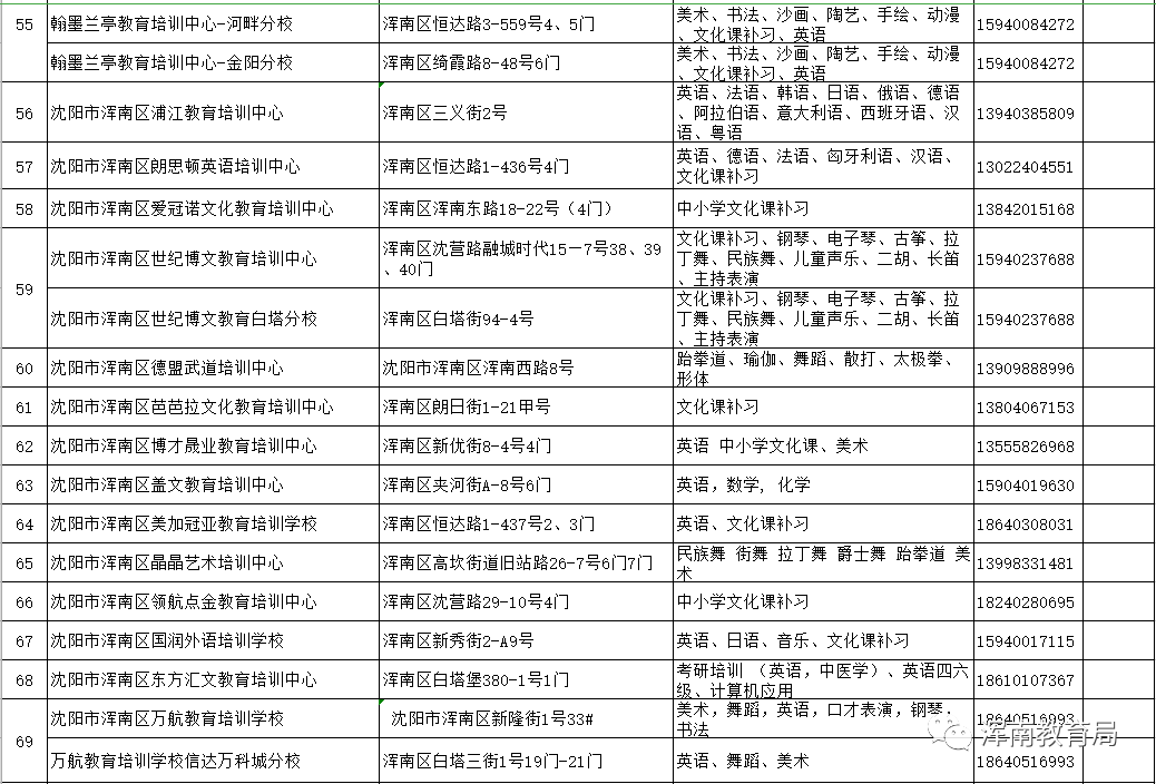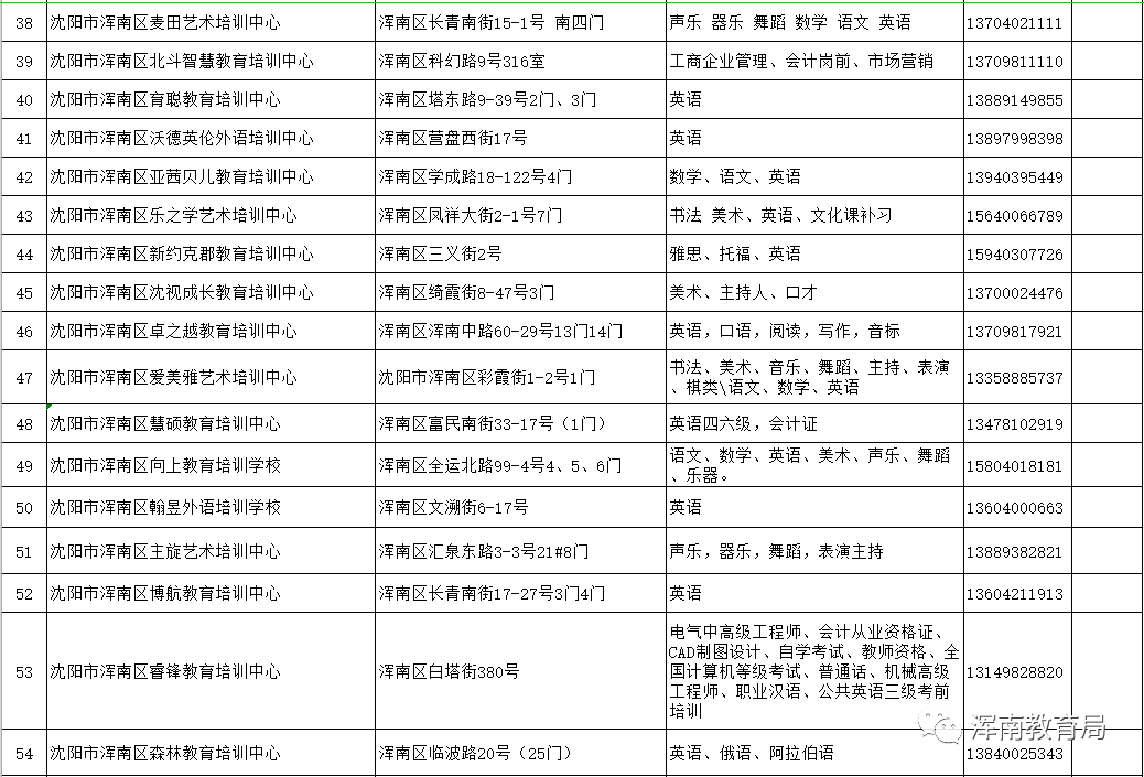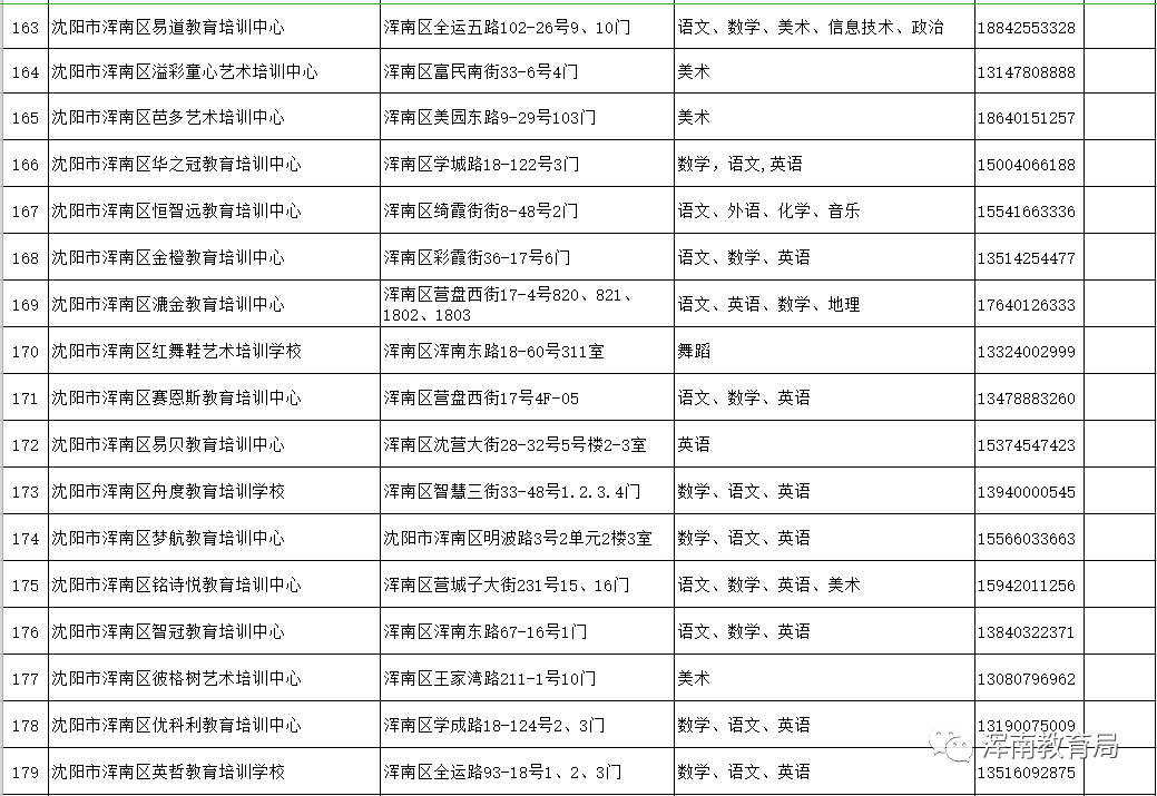 秋季开学之际,浑南区教育局将区内合法办学的校外培训机构黑白名单予以公布,供大家参考、选择。