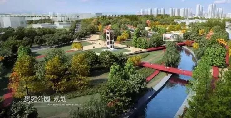 樊宛公园,位于七里河路以北、清河西路以西,占地面积28公顷,以五彩花境和节气文化为主题,重点打造湿地花海、幽谷花镜、粉黛坡、五彩园、薰衣草园、千米樱花河谷、阳光活动草坪、玫瑰主题情侣桥、牡丹主题园、观景塔、樊苑驿站、户外运动休闲、枫林乌桕、花语坡、百米花廊、儿童乐园等十八个景观节点。
