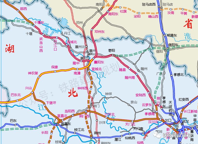 汉口火车站(已有)——孝感东——朋兴(预留)——云梦东——安陆西——随州南——随县——枣阳——襄阳东津——隆中——谷城北——丹江口——武当山西——十堰东