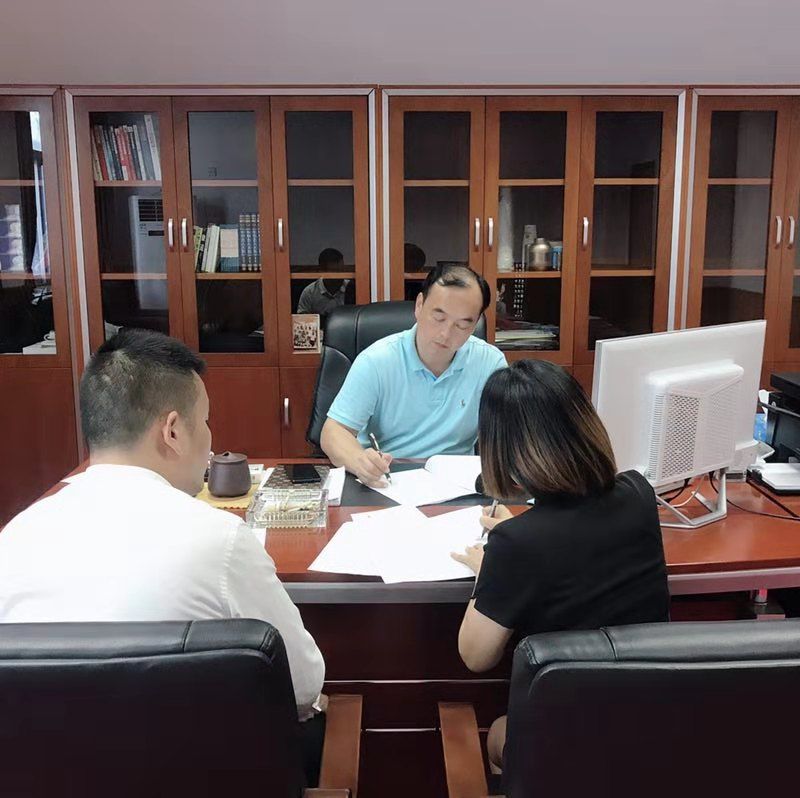 (普鲁菲尔总经理邓金波与诚云科技董事长定莲群签合同现场)
