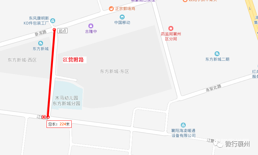 此路位于红星社区,长约220米,宽约9.5米,呈南北走向,北起卧龙路,南止江营路。因此路位于江营路附近,故命名为江营附路。