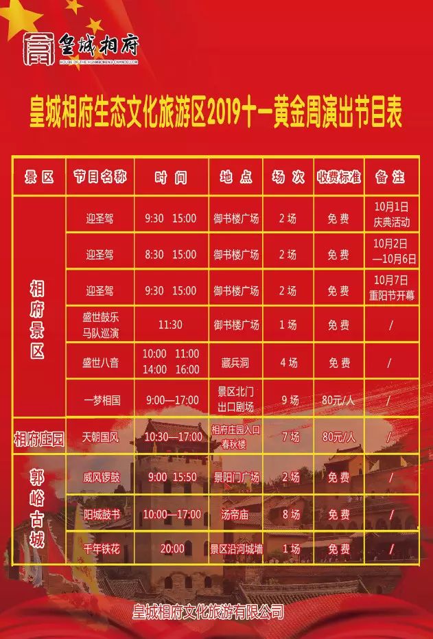 皇城相府厚重的文化气息、如诗如画的美丽风光,给您平添不虚此行的愉悦。除可欣赏大型开城仪式“迎圣驾”、盛世八音和马队巡演外,您还可以和家人朋友到相府庄园春秋楼体验大型实景体验;当夜幕降临,千年铁花、音乐喷泉流光溢彩,伴您度过一个愉快的十一假期。