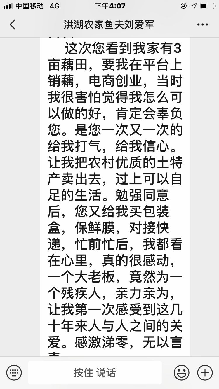 他是一个懂得感恩的人!昨天发货时他跟我说:别人献我爱心,我报人以真心,藕品质绝对保证!他发出来的藕,是一支藕中,去头去尾,只取中间几节,正宗洪湖煨汤粉藕。他良心发货,希望大家继续支持他,送人玫瑰,手留余香。