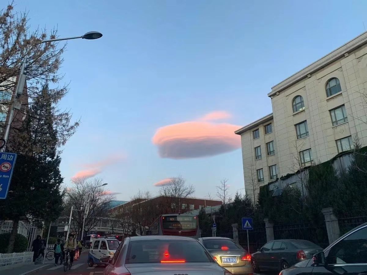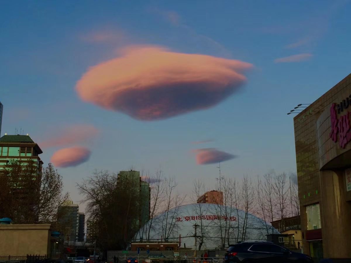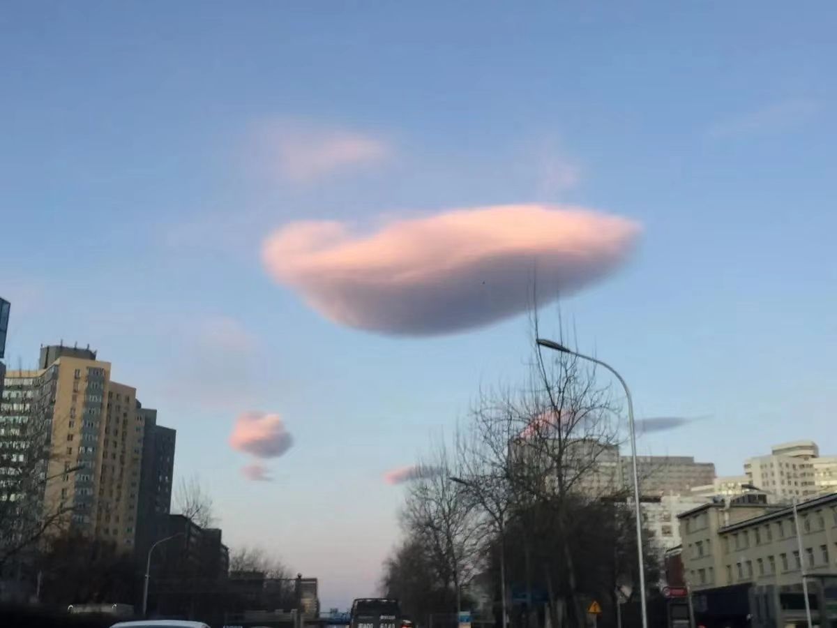 今早 北京天空出现形似飞碟的云团