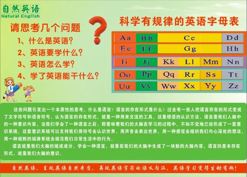 英语是世界上最简单,最有规律的语言,科学的学习方法应该是按语音,字母,字,单词,短语,句子,篇章段落这样的顺序学的。首先一定要掌握正确的发音和科学的英语字母逻辑规则,才能真正学好英语!