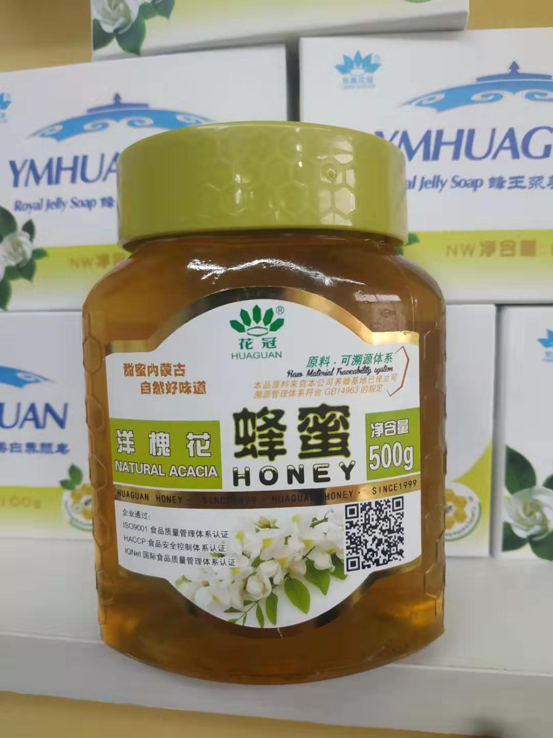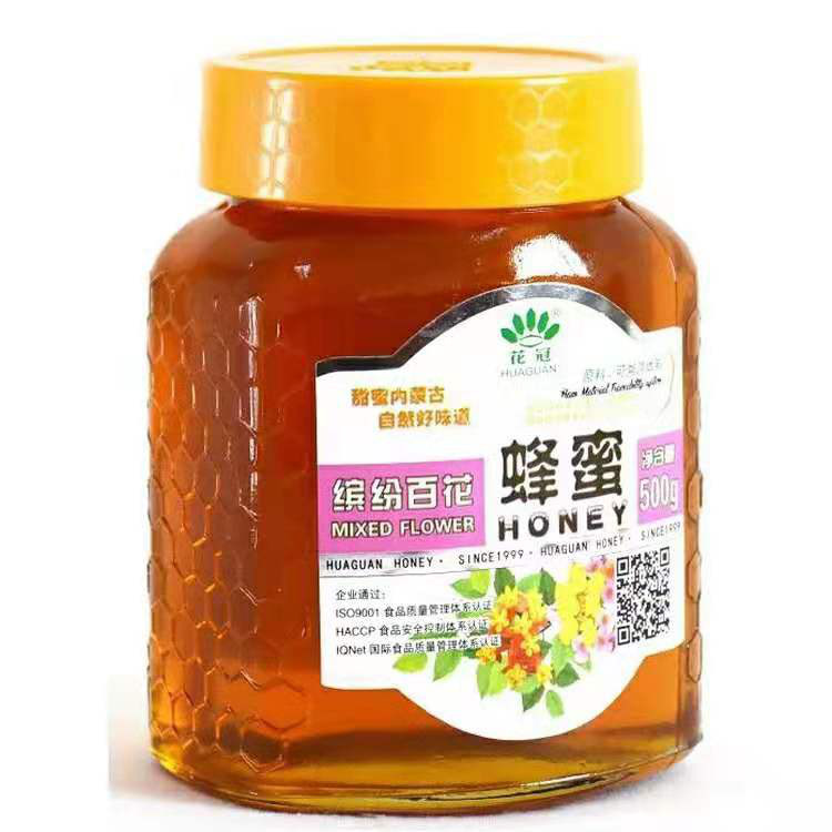 是蜜蜂从开花植物的花中采得的花蜜在蜂巢中酿制的蜜。