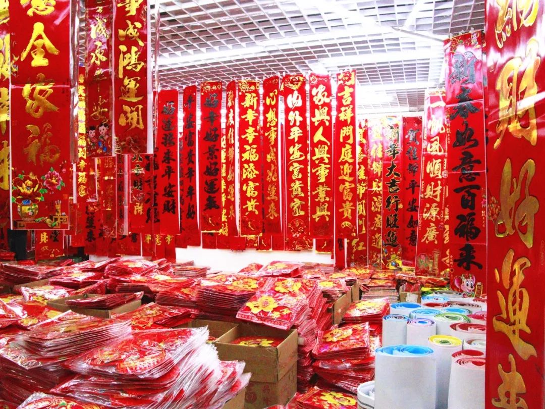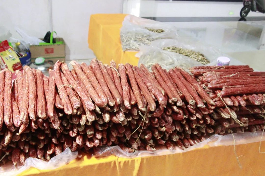 各展位前早已聚满市民,年味好货琳琅满目,灯笼字画、腊肠腊肉......