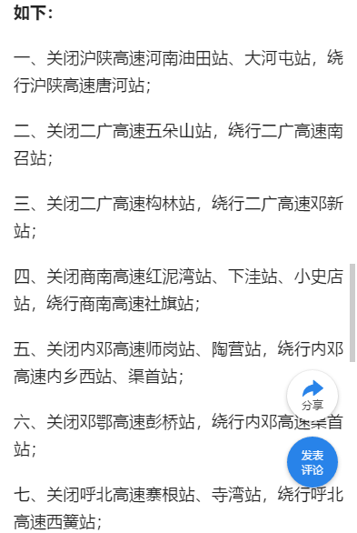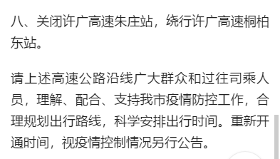 四、即日起,本县行政区域内,高速公路进出站口、火车站、汽车客运站、国省道等重要进出口通道设立卫生防控检疫站,实行交通管制,全县高速、国道、省道、县乡道路劝返前往湖北省和湖北省来镇平方向的车辆和人员。全县客运车、镇平至南阳公交车、出租车、网约车、三轮车一律暂停营运。