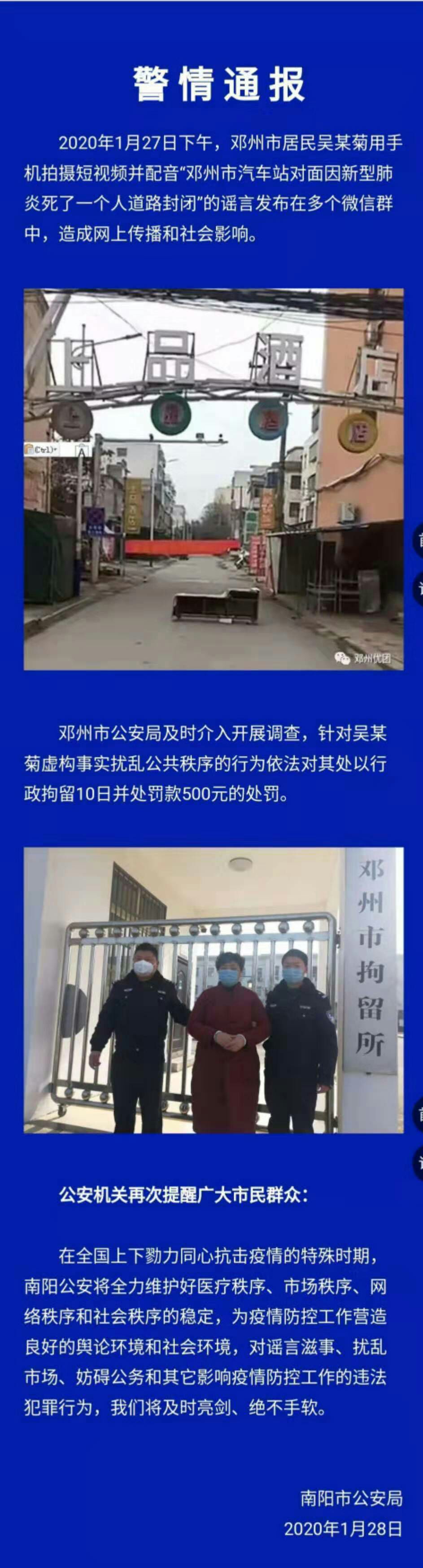 《聚焦》邓州市民发布虚假信息被依法拘留!