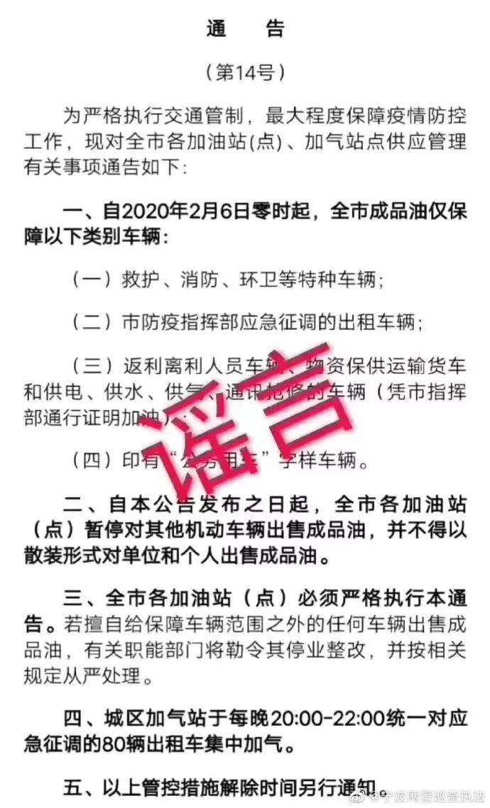 网传消息称,宁波市加油站仅保障应急车辆,暂停对其他车辆出售成品油。